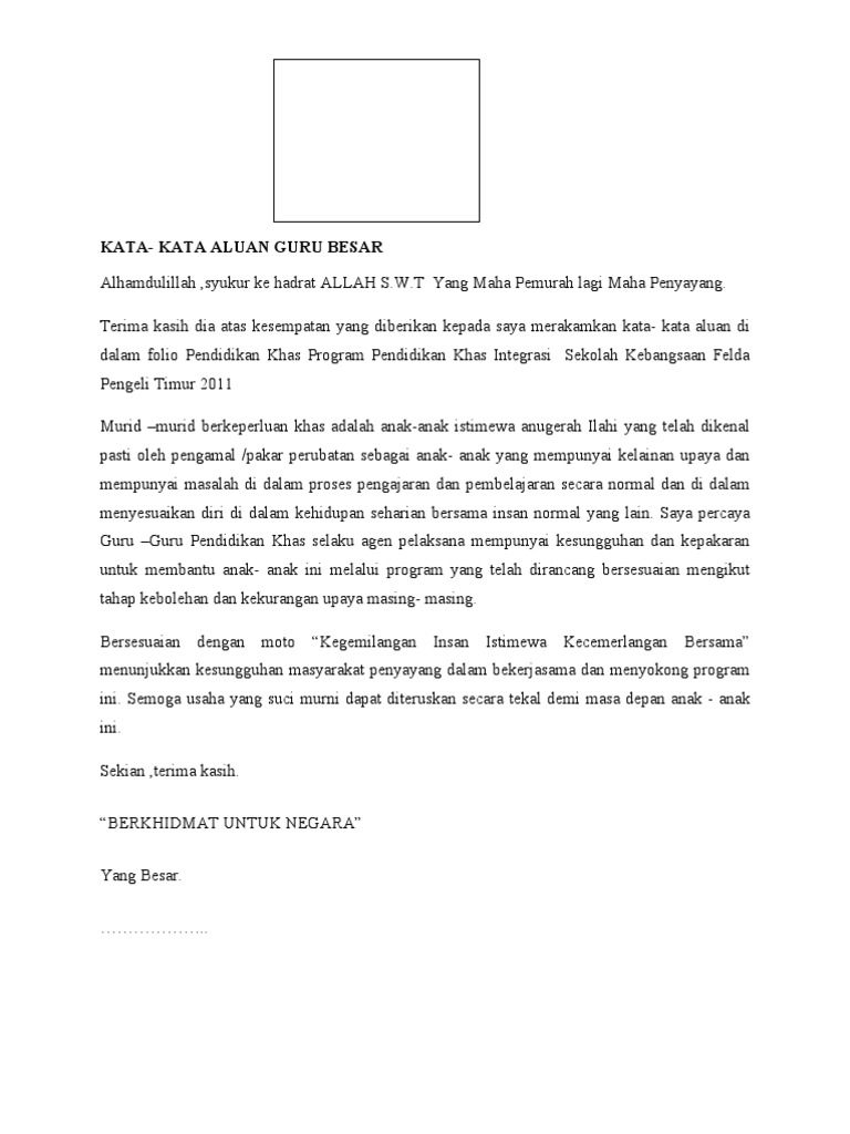 ALUAN PENGARAH PUSAT SISWAZAH UNIVERSITI KEBANGSAAN MALAYSIA Assalaamualaikum wrwb dan Salam Sejahtera Saya mengucapkan terima kasih dan syabas kepada Jawatankuasa Panduan Penulisan Tesis Gaya UKM dan semua pihak yang terlibat secara langsung mahupun tidak langsung dalam penggubalan dan penerbitan Panduan Penulisan. Kata-kata aluan pengarah kesihatan negeri 5. Secara sedar atau pun tidak sepanjang detik waktu yang silih berganti telah luput 1438 tahun peristiwa Hijrah meninggalkan kita.